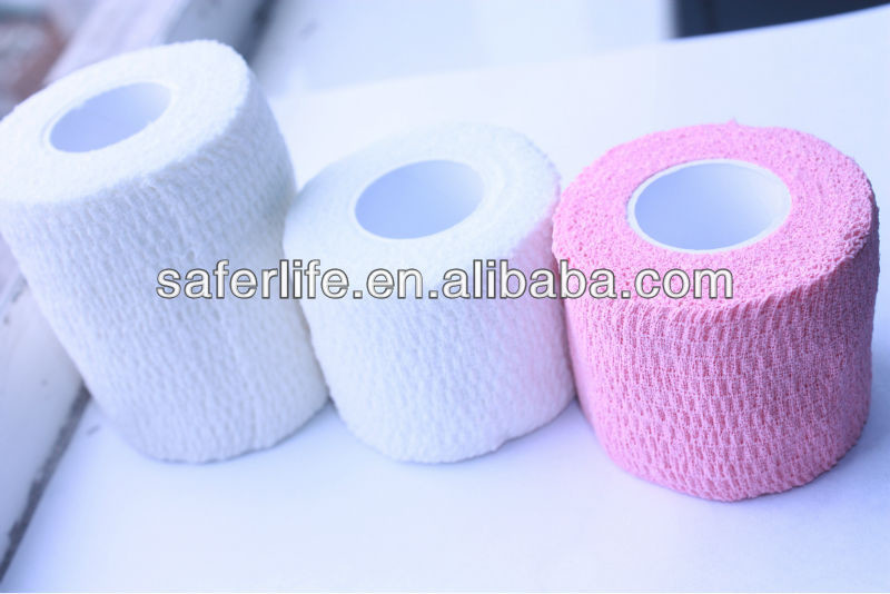 lágrima fácil, envoltura cohesiva autoadhesiva. Transpirable, antideslizante. Todos los colores populares disponibles. Empaquetado en ya sea solo color o en surtido de varios colores.